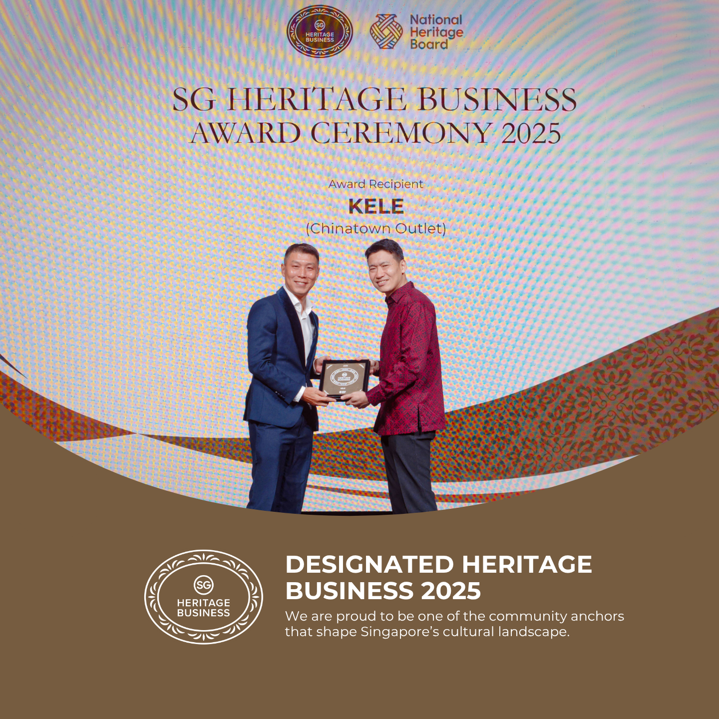 Kele was proudly recognized as a Singapore Heritage Business — an honour that celebrates brands who have stood the test of time, preserving culture, craftsmanship, and community through the years. This recognition is more than just an award — it’s a tribute to team member and every customer who has been part of our story.