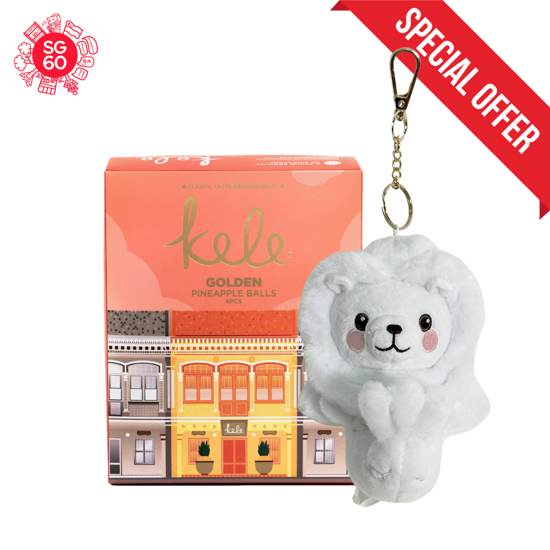 Classic, buttery, and endlessly loved. Our signature Golden Pineapple Balls feature rich pineapple filling wrapped in melt-in-your-mouth pastry crust. Paired with the iconic Mr. Merlion mini plush keychain in white—this bundle is a proud nod to our tradition, with a wink of charm!
