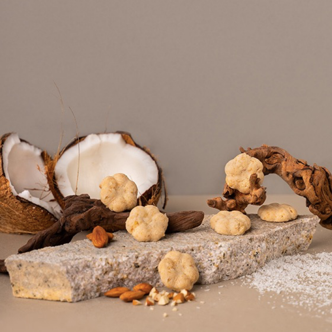 It’s the traditional crumbly almond cookie but with a drizzle of sweet coconut milk!**Our tin packaging just got an upgrade! Now in a sleek metallic finish, giving it a fresh, and modern look.