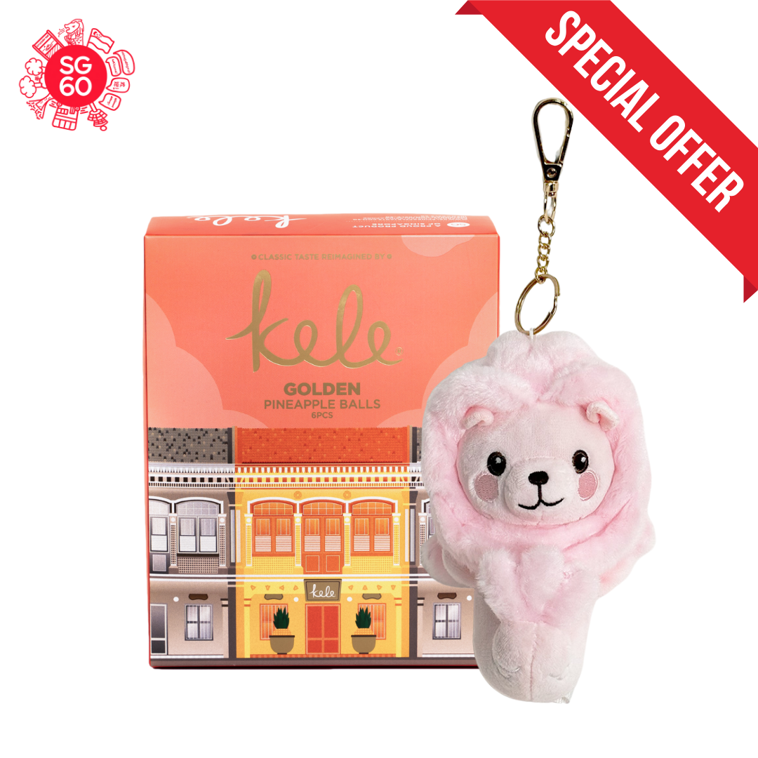 Classic, buttery, and endlessly loved. Our signature Golden Pineapple Balls feature rich pineapple filling wrapped in melt-in-your-mouth pastry crust. Paired with the iconic Mr. Merlion mini plush keychain in pink—this bundle is a proud nod to our tradition, with a wink of charm!