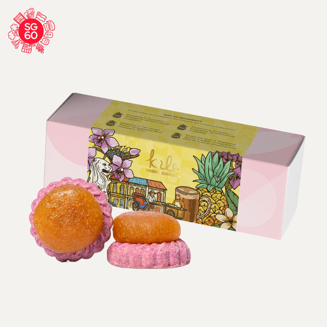Elegant, floral, and refreshingly local — this limited-edition flavor celebrates Singapore’s 60th birthday with a fragrant twist. Part of our SG60 Singapore Series, these pineapple tarts are infused with delicate orchid essence and the juicy sweetness of lychee, inspired by the national flower and our garden city charm.